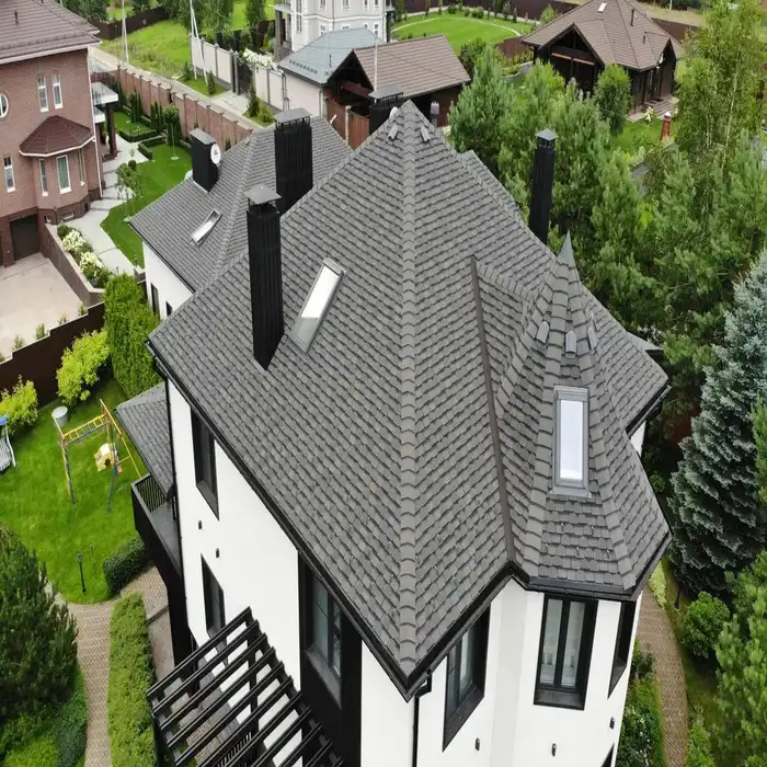 Гибкая черепица может применяться не только на малоэтажных жилых зданиях, но и при строительстве административных, жилых многоэтажных и других типов зданий.
